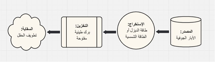 الاستخراج: يتمّ باستخدام محرّكاتٍ تعمل بالديزل تقليدياً لاستخراج مياه الآبار، وخلال السنوات الأخيرة يزداد استخدام الطاقة الشمسية لهذا الغرض. تقديرات رئيس اتحاد الفلاحين: أكثر من ثلث المزارعين يستخدمون الطاقة الشمسية، والتحوّل في تسارع. يعلّق أسعد على الأمر بالقول: “يشكّل التحوّل نحو الطاقة الشمسية مظهراً لتحديث الزراعة، لكن التحديث يقف عند هذا الحدّ، فنسبةٌ ضئيلة جداً من مزارعي المنطقة جرّبت محاصيل جديدة أو حدّثت أساليب الري”.